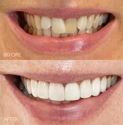 Corrects chips, cracks, gaps, discoloration, and even reshapes teeth.
