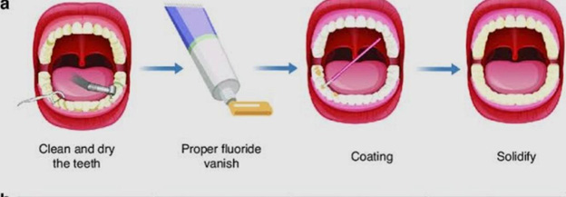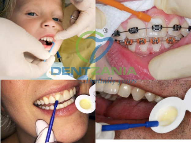 2. A high-concentration fluoride gel, foam, or varnish is applied.