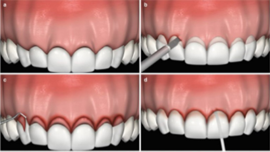 1. Laser Gum Contouring – Removes excess gum tissue using lasers . Minimally invasive and very effective. However cannot be used when bone recontouring may be required along with gums.