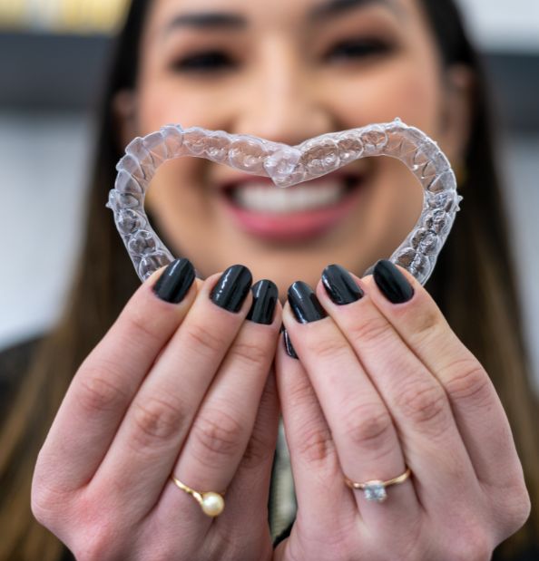 Clear aligners are nearly invisible plastic trays that snap over your teeth. As you wear them, they apply gentle pressure on your teeth to gradually reposition them.