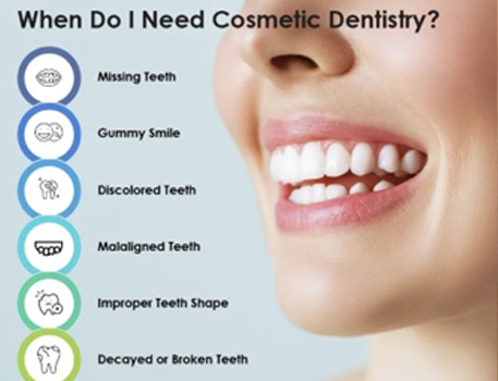 Cosmetic dentistry focuses on enhancing the appearance of teeth, gums, and smiles through various specialized treatments. These include procedures such as teeth whitening to brighten smiles, dental bondings or veneers for covering imperfections, cosmetic crowns, teeth and gum contouring, orthodontic treatments for proper teeth alignment etc. It can correct single or multiple teeth imperfections, depending on what outcome is desired.