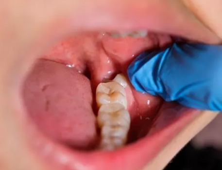 - Pain or swelling in the back of the mouth
